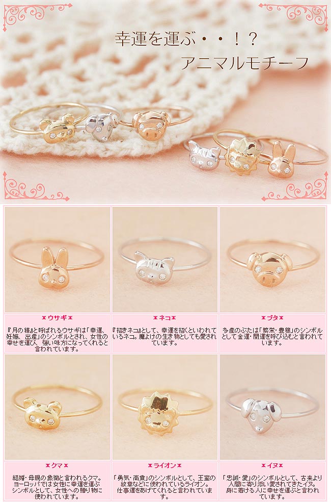 ダイヤモンド ゴールド ピンキーリング レディース 指輪・パティシア 大人気のアニマルモチーフ うさぎ 猫 犬 ライオン 豚モチーフ かわいい 動物【アニマルジュエリー】 ファランジリング ミディリング 関節リング ファ ブランド